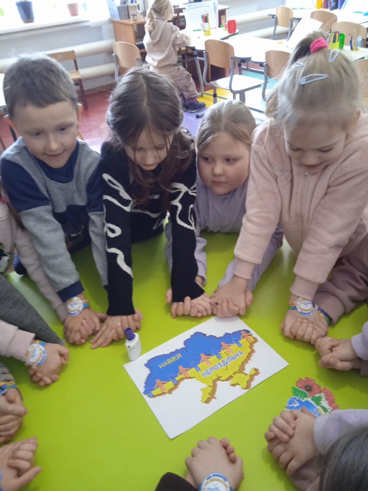 - Патріотичний квест: Для учнів середньої ланки було організовано історичний квест, де вони демонстрували свої знання з географії та історії України. Разом створили 3Д карту України.